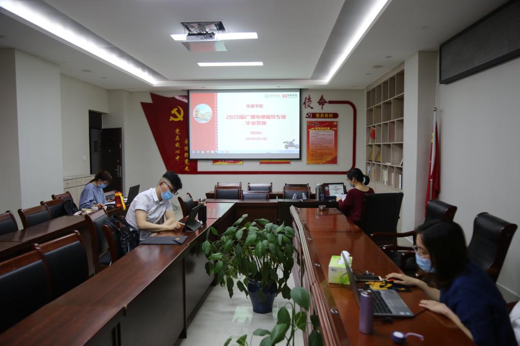 结合学校疫情防控需要和毕业生工作要求,best365网页版登录入口2020届本科毕业论文(设计)采取网络答辩。为有序开展网络答辩工作,学院成立以焦素娥院长、王振海书记为组长,以刘想如副院长、胡波副书记、刘新建副院长为成员的2020届毕业论文(设计)答辩工作领导小组。首场网络答辩于5月12日上午10点在社科楼104举行,焦素娥、王振海带领答辩工作领导小组莅临现场,对答辩工作给予指导。首场网络答辩由吕楠博士担任组长,对43名播音与主持艺术专业学生进行毕业答辩,答辩通过微信群进行。网络答辩分别于12日、15日和16日举行,16日下午3点在社科楼104举行最后一场网络答辩,答辩由张世海教授担任组长,通过腾讯会议进行。