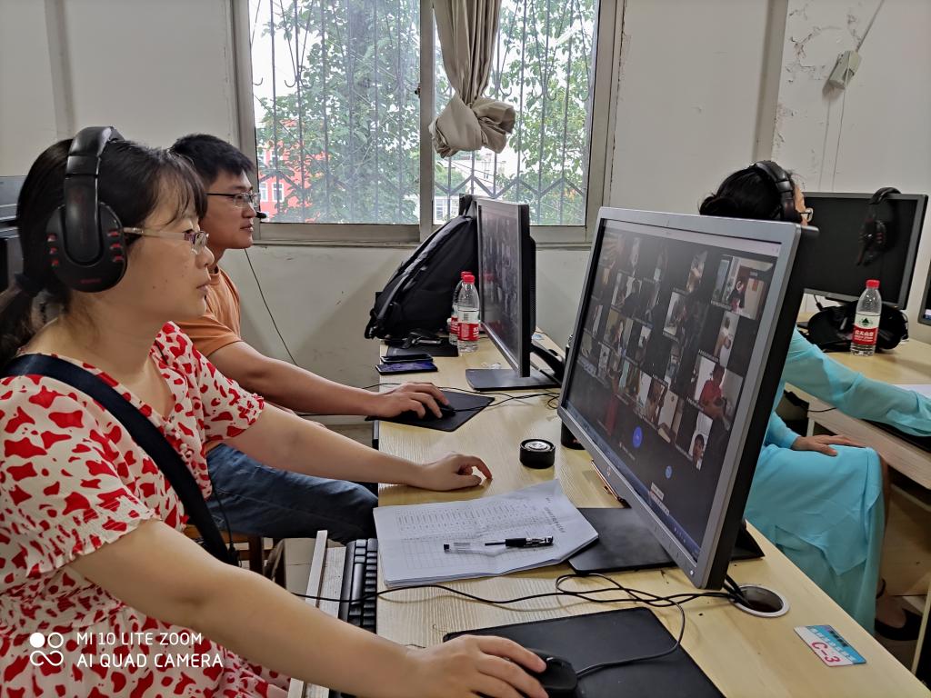 焦素娥、王振海、刘想如分别对考生信息核查、监控位置摆放等监考重点、难点进行了详细询问和交流。根据学院期末考试工作安排,本学期有11门专业课和16门公修课采取线上考试,共安排了91场次监考;专业课考试安排在6月30日-7月3日进行,公修课考试安排在7月8日-7月10日进行;考试利用学校网络教学平台做为线上考试平台,运用腾讯会议作为远程视频监考平台,同时运用录屏软件对考试过程进行全程录像。由于前期准备充分,首场监考有序进行,现场出现的一些状况如部分考生网络掉线、设备电量不足、考试衣着欠妥、监控设备位置摆放等,都得到了及时、有效解决。