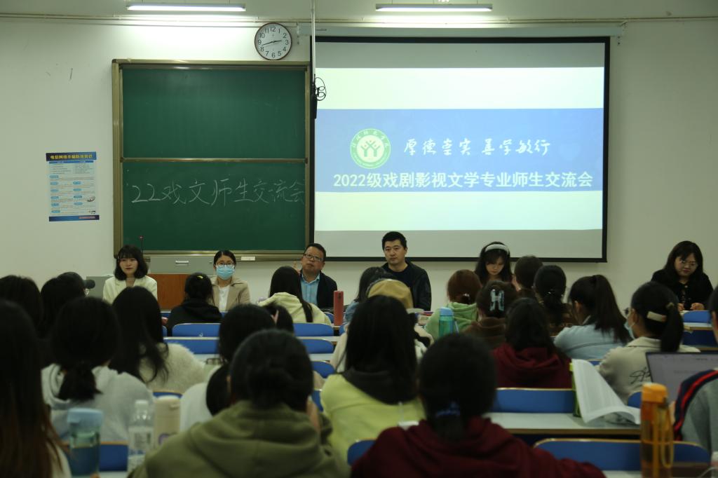 11月8日下午,best365网页版登录入口2022级戏剧影视文学专业师生交流会在社科楼119教室举办。院长吕东亮,戏剧影视文学专业系主任段金龙,部分戏剧影视文学教师及全体学生共同了参加交流会。交流会由段金龙主任主持。