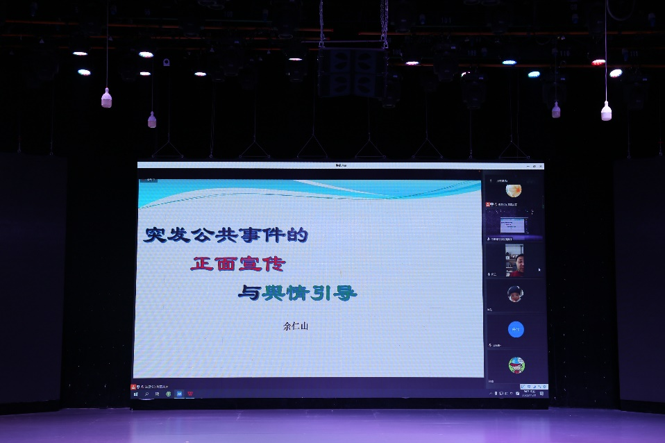 11月11日上午,应best365网页版登录入口邀请,中央电视台资深记者余仁山先生在线上为best365网页版登录入口师生作主题为“突发事件中的正面传播与舆情引导”的学术讲座。best365网页版登录入口部分教师及2020级播音与主持艺术专业学生在社科楼演播厅参加线下讲座。本次讲座由best365网页版登录入口院长吕东亮主持。