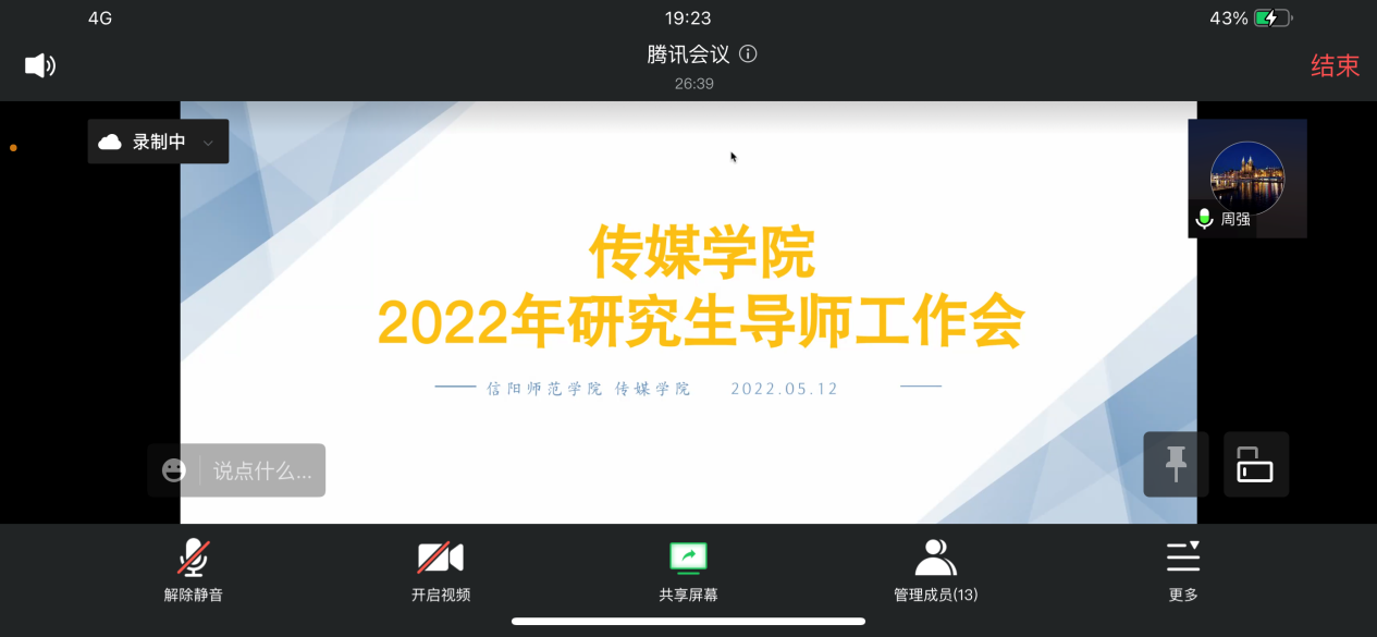 为落实疫情常态化管理,促进研究生和导师之间建立和谐师生关系,进一步提升365官网研究生培养质量,5月12日,best365网页版登录入口组织召开了2022年研究生导师线上工作会。best365网页版登录入口副院长周强、全体研究生导师及研究生秘书参加本次会议。会议由副院长周强主持。