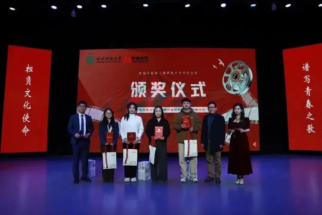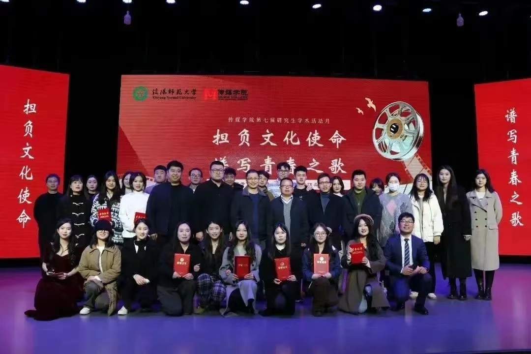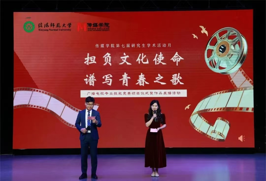 11月30日晚,best365网页版登录入口第七届研究生学术月“担负文化使命,谱写青春之歌”广播电视专业技能竞赛颁奖仪式及优秀作品展播活动在社科楼演播厅举办。本次活动特邀武汉大学王杰泓教授担任颁奖嘉宾,信阳师范大学best365网页版登录入口院长吕东亮出席活动,best365网页版登录入口研究生导师代表及best365网页版登录入口全体在校研究生、广播电视编导专业本科生、新媒体中心学生参加活动。