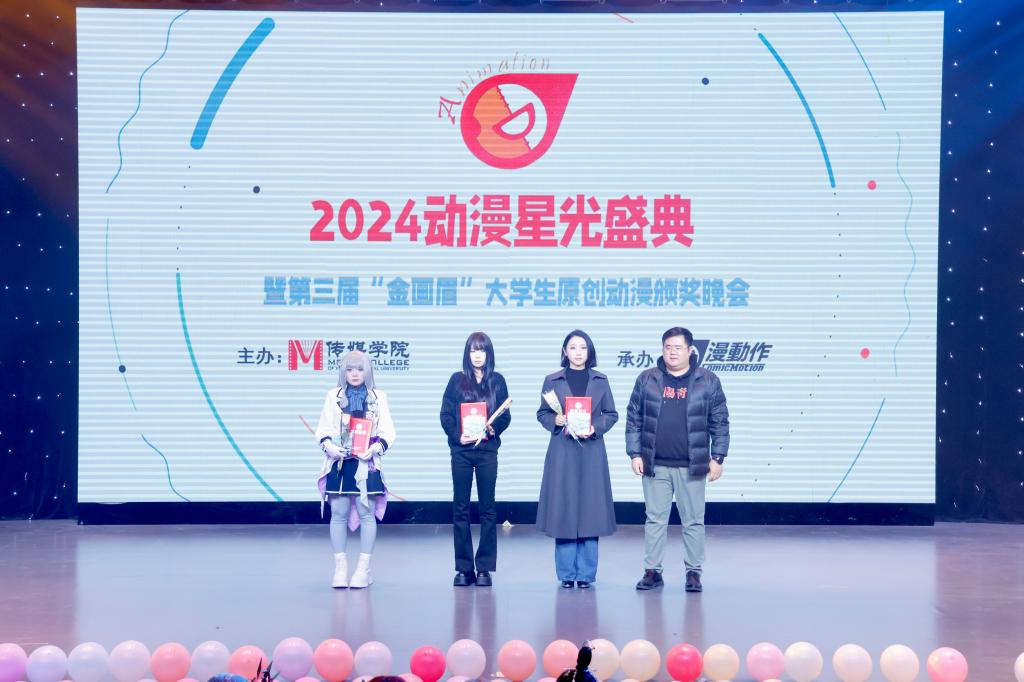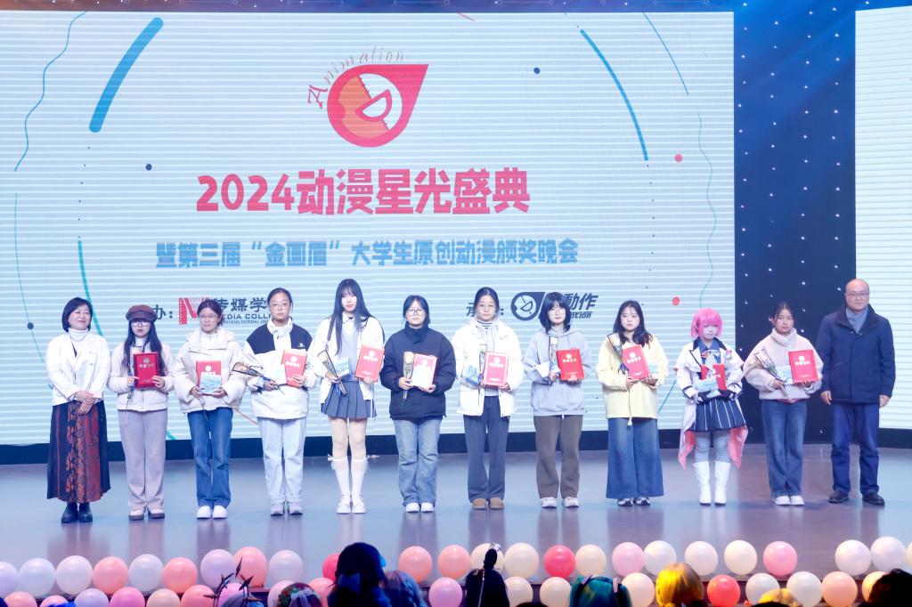 12月10日晚,第三届“金画眉”大学生原创动漫大赛颁奖典礼在社科楼演播厅举行。中国动画学会会长、国家广电总局宣传司原司长马黎,校党委副书记、工会主席岳宗德出席颁奖典礼并为获奖选手颁奖,best365网页版登录入口师生以及漫动作动漫社学生代表参加颁奖典礼。