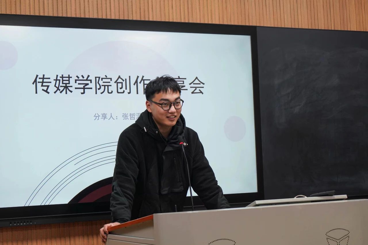 2021级研究生张哲源,2022级研究生马景瑞、董振鹏、纪世新,2023级研究生李文博、韩志倩、胡振峰作为学生代表在活动中分享了创作感悟。他们分别以导演、策划、摄像、制片等视角向研究生们讲述了自身在创作过程中累积的经验和各种小妙招。首先要增强审美能力培养,通过观看大量优秀影片、欣赏音乐增强自己的审美能力,将看到的、听到的优秀作品融入到实践创作中去,从而提升创作作品的质量。也要做好前期策划工作,明确团队分工,树立团队意识,保持稳定的情绪,各成员之间要团结协作,相互理解。
