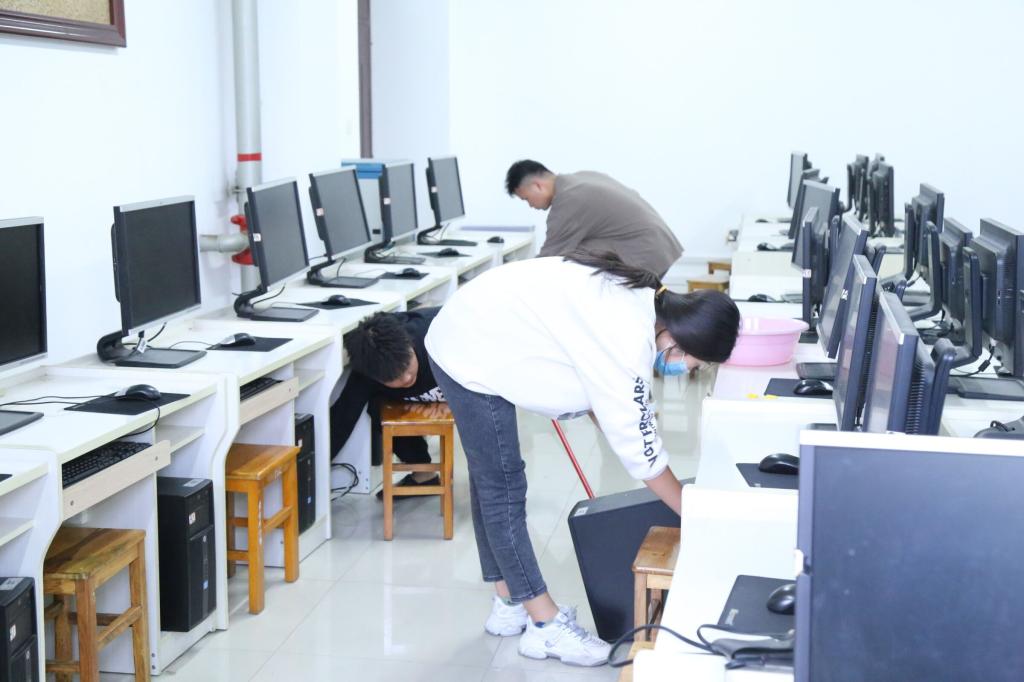 参加活动的成员统一着装,自带工具,以小组为单位对社科楼211、324、325、326、327,逸夫楼309六个教室进行清洁活动,美化学习环境。同学们分工明确,认真投入地打扫每一个教室。在清理过程中,同学们对课桌上的字迹和抽屉里的垃圾进行了集中清理,还对教室的卫生死角进行了清洁。扫地、擦桌、清理垃圾等看似细微繁琐的活动,体现了同学们为学校师生服务的热情。同学们用实际行动做出表率,以呼吁大学生们爱护学校公物。