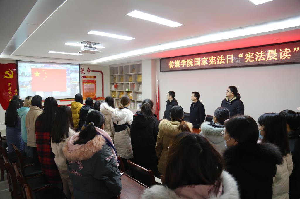 12月4日上午,best365网页版登录入口师生在社科楼311会议室组织收看教育部国家宪法日"宪法晨读"网络直播活动。党委书记王振海主持会议,全体辅导员及best365网页版登录入口部分师生共同观看此次直播并参加宪法诵读活动。