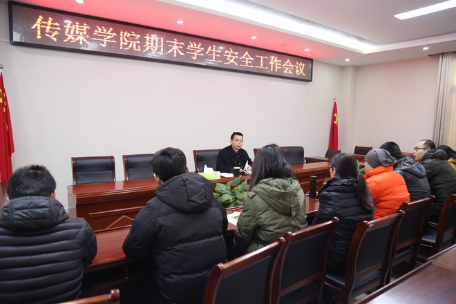 王振海传达了学校期末学生安全工作会议精神,并就学生医保收缴、期末考试动员、冬季用电安全、研究生考试期间考勤纪律和防传销等事宜进行安排。