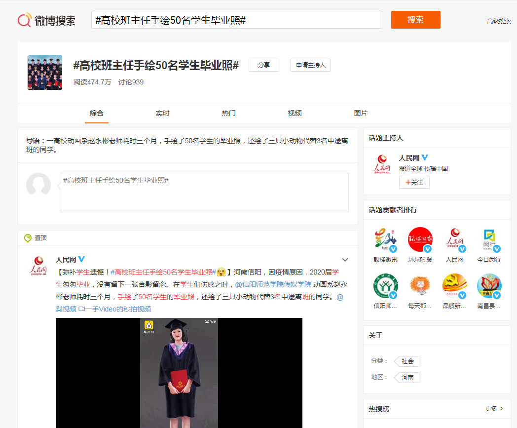 近日,#高校班主任手绘50名学生毕业照#话题登上微博热搜,被人民网、环球时报等转发,参与人数近500万。best365网页版登录入口2016级动画班班主任赵永彬老师自6月8日起,历时三个月,为班级50毕业生手绘毕业照,弥补这个特殊毕业季的遗憾。